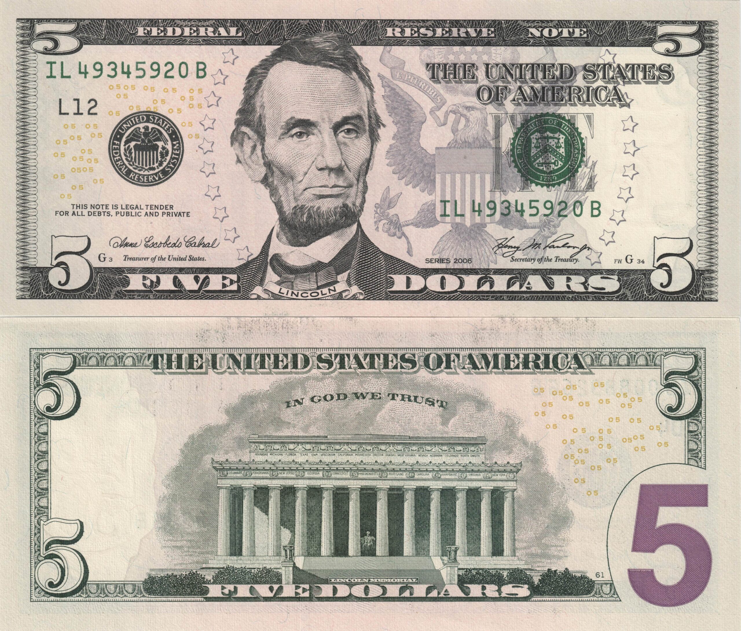 • The surface is adorned with genuine subdued elegance and watermarks. Around the perimeter, you can find filigree patterns that imitate the five’s original features and make it legal tender for all financial obligations.